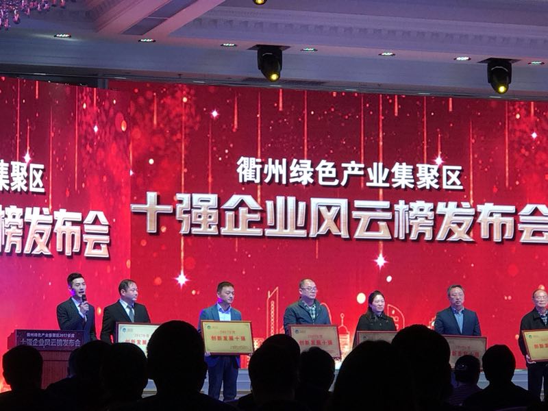 3月7日,衢州綠色產(chǎn)業(yè)集聚區(qū)表彰2017年度產(chǎn)值總量十強(qiáng)、企業(yè)上市十強(qiáng)等八批“企業(yè)風(fēng)云榜”上榜企業(yè),我公司獲得創(chuàng)新發(fā)展十強(qiáng)。